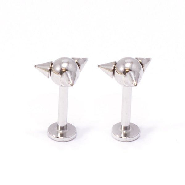 Pair of Labret Monroe Jewelry Spike and Ball Design 14G 3/8" 10mm Lip, Tragus, Helix.