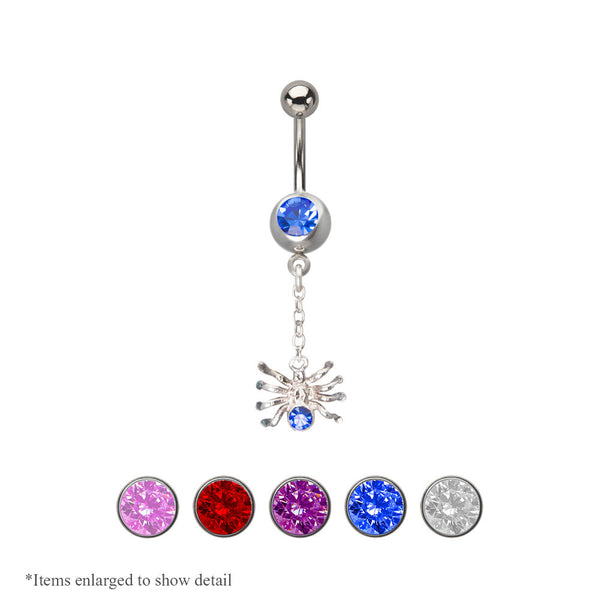 14ga Dangle Belly Ring .925 Spider 316L Steel Belly Button Ring Cz Gem