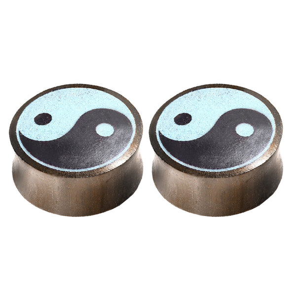 Turquoise Yin Yang Logo Organic Natural Sono Wood Double Flared Ear Plugs Gauges Expanders Stretching Piercing Jewelry - Sold as Pair