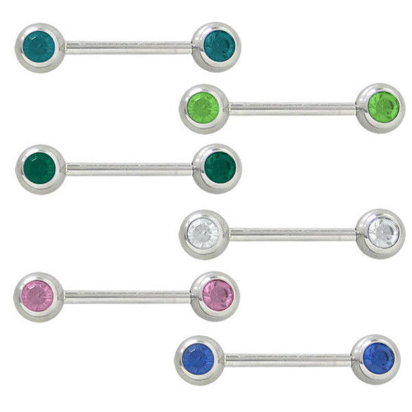 Barbell Nipple Ring 14G Surgical Steel with Colored Gems (6mm) - 6 Colors