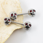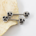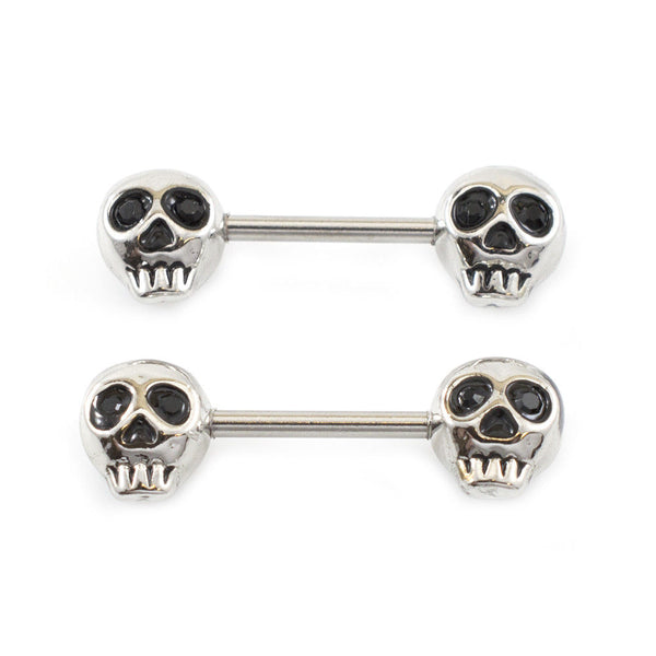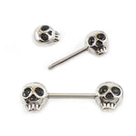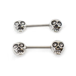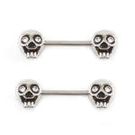 Nipple Barbell Jewelry with Skull Design and Cz Gems 14G Surgical Steel
