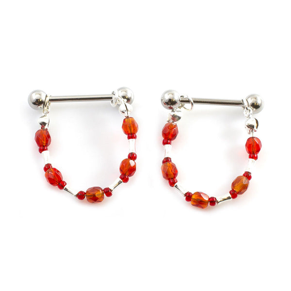 Nipple Barbell with Beads Chain Dangle 14G Surgical Steel
