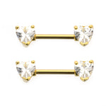 Nipple Barbell with Heart shape Cubic Zirconia Gold IP 14g