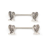 Nipple Jewelry Ring Barbell with folded angel wings design 14g Surgical steel