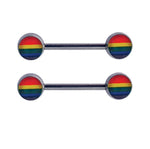Nipple Ring Barbell 14G Pair Rainbow Design Jewelry