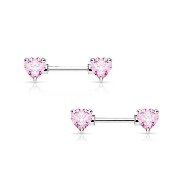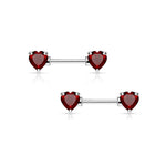 Pair of Double Heart Gem Nipple Rings Shields Barbells 14 Gauge 1/2" - 4 Colors