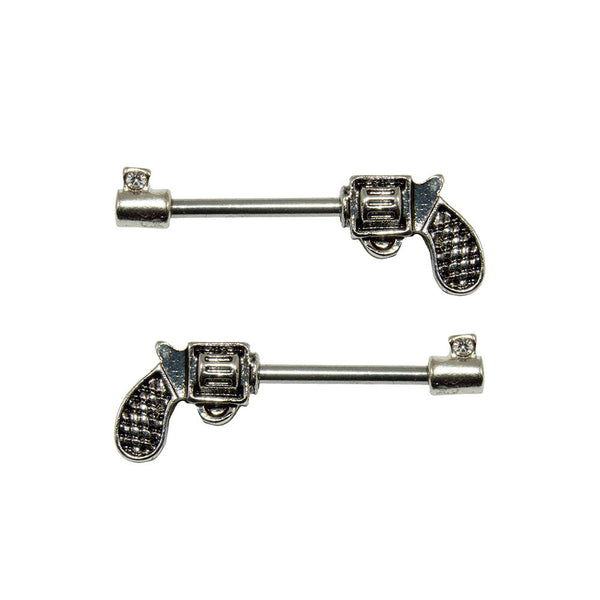 Pair of Nipple Rings 14G Revolver Gun Design Surgical Steel