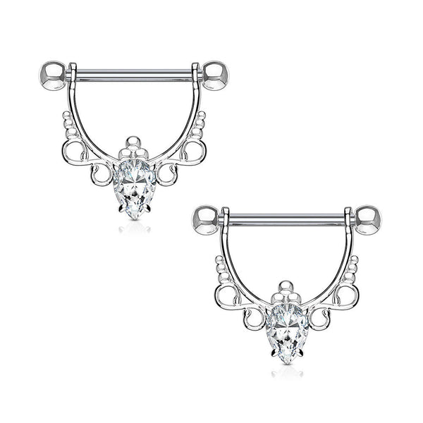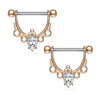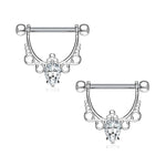 BodyJewelryOnline Nipple bar rings shield barbell CZ Center with Infinite Filigree Dangle drop