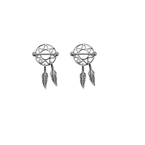 This beautiful nipple shield has captured the essence of the dream catcher embellished with CZ gems and dangling feathers.