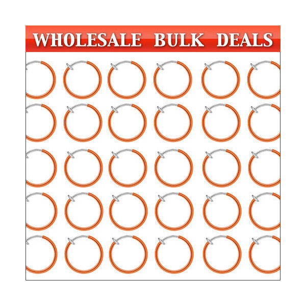 These are non-piercing rhodium plated orange spring hoops body jewelry.