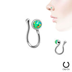 Fake Non-Piercing Nose Clip - Rhodium Plated with Bezel-Set Opalite - Sold Each