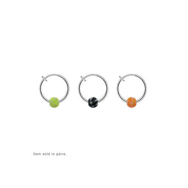 This is a non-piercing rhodium plated spring hoop with acrylic checker like beads.