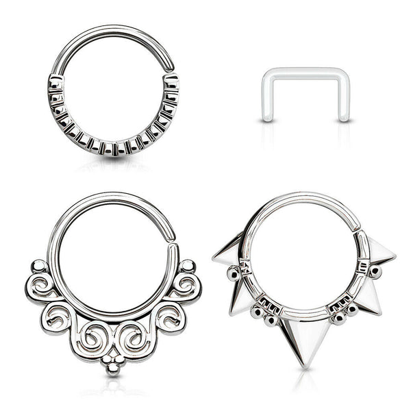 4Pcs Value Pack Assorted Half Circle Bendable Nose Septum and Ear Cartilage Hoops with Free Clear Retainer