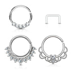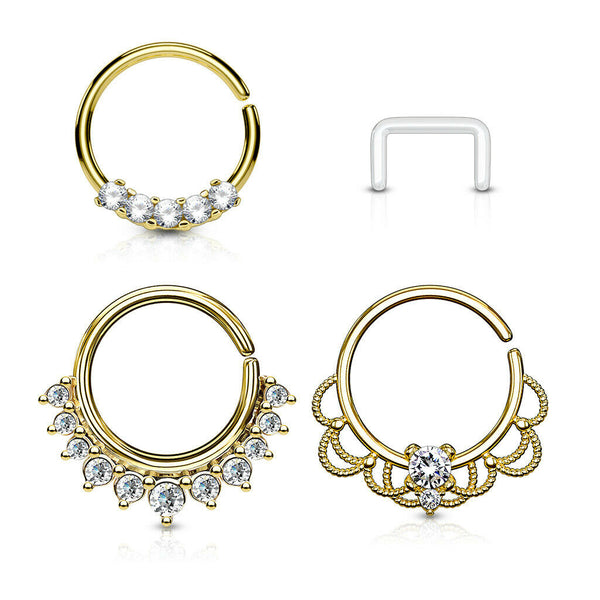 4 Pcs Value Pack Assorted Half Circle Bendable Nose Septum and Ear Cartilage Hoops with Free Clear Retainer