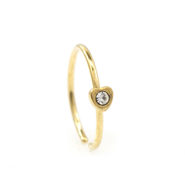 Bendable Nose Hoop rings with Heart Design and Cubic Zirconia Stone 20G