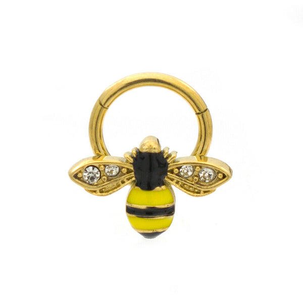 Ear Cartilage & Septum Segment Ring Hinged with Bee Design 16ga Surgical Steel  Description Ear Cartilage & Septum Segment Ring Hinged with Bee Design 16ga Surgical Steel  Available color gold...