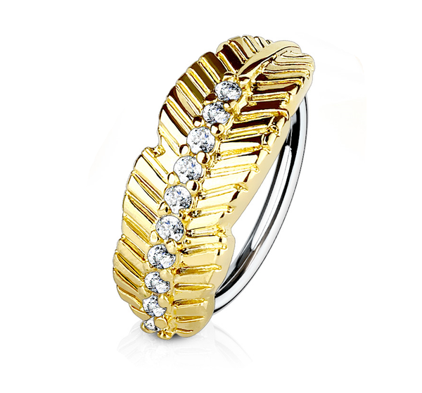 Nose and Cartilage Bendable Hoop Ring with Leaf Design and Paved Cubic Zirconias 316L Surgical Steel 20 ga 18 ga Sold Each   Description Leaf Top Design Hoop available in...