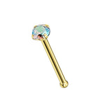 Nose Bone Stud 9kt Solid Yellow Gold with Prong Set Aurora Borealis CZ 20 Gauge