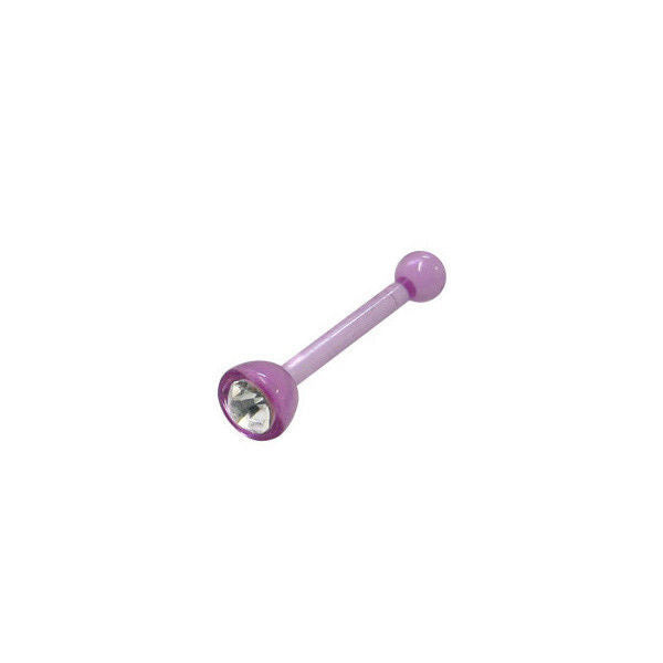 This is a high quality purple acrylic nose bone with a 1.5mm clear cubic zirconia jewel.