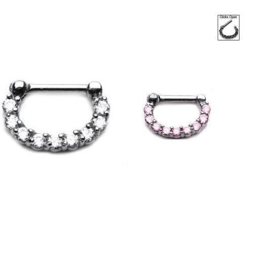 Septum clicker Prong Set Clear Jewel Ring 14 gauge and 16 gauge