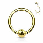 Hinged Hoop Clicker Segment Ring with Fixed Ball for Ear Cartilage and Septum 16ga Surgical Steel - Sold Each