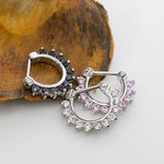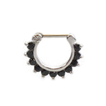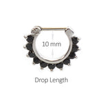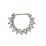 Septum Clicker with multiple Prog Setting Cz Gems 16g Surgical Steel DESCRIPTION Septum Clicker with multiple Prog Setting Cz Gems 16g Measures: 16g (1.2mm), 3/8 In (10mm) Drop Length Made...