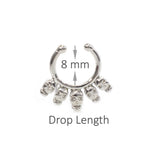 Septum Hanger with five small Skull Design Made of Surgical Steel 8mm Drop Length Non-Piercing Jewelry