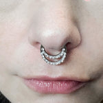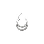 Septum Hinged Clicker Double Row CZ Pearl Jewels Surgical Steel 16 Gauge