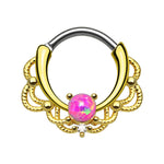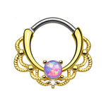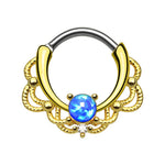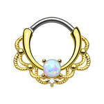 Septum Piercing Clicker - Gold Lacey Single Opalite w/CZ Gem - 16ga - Sold Each
