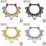 Septum Piercing Clicker - Heart Tribal Fan All 316L Surgical - 16ga - Sold Each