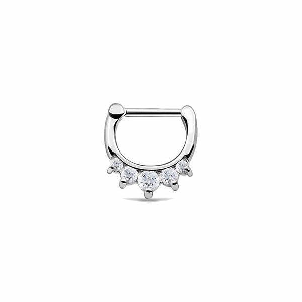 Beautifully Crafted Septum Clicker With 5 Prong Set Cz Gems.