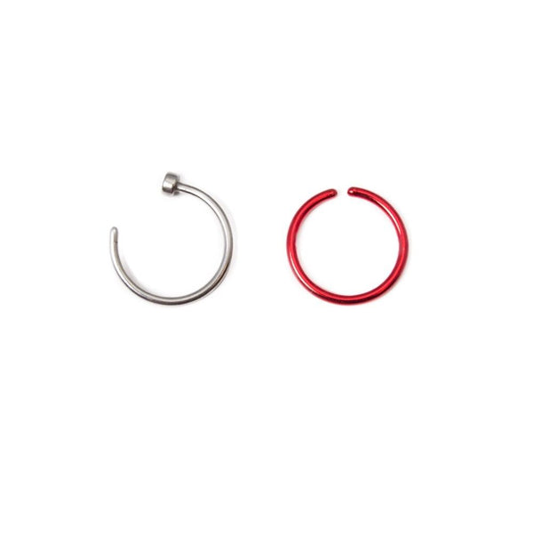 Set of 2 Nose Rings 20G Hoop Ring and Red Seamless Continuous Ring