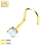 Gold Nose Screw - Prong Set Opalite Stone Top - 14K Solid Gold - White or Yellow