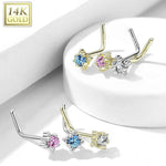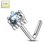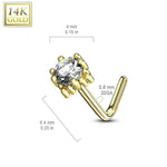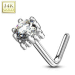 20G L Shaped Nose Rings Prong Set CZ Top Four Point Star 14K Solid Yellow & White Gold L Bend Nose Studs Nostril Piercing Jewelry 1/4" 6mm - Sold Individually...