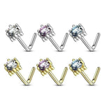 • Style -  Prong Set CZ L Shaped Nose Rings