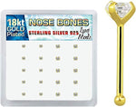 Box 20 Pieces of 925 Sterling Silver Nose Bones 22g(0.6mm) with Gold Plating