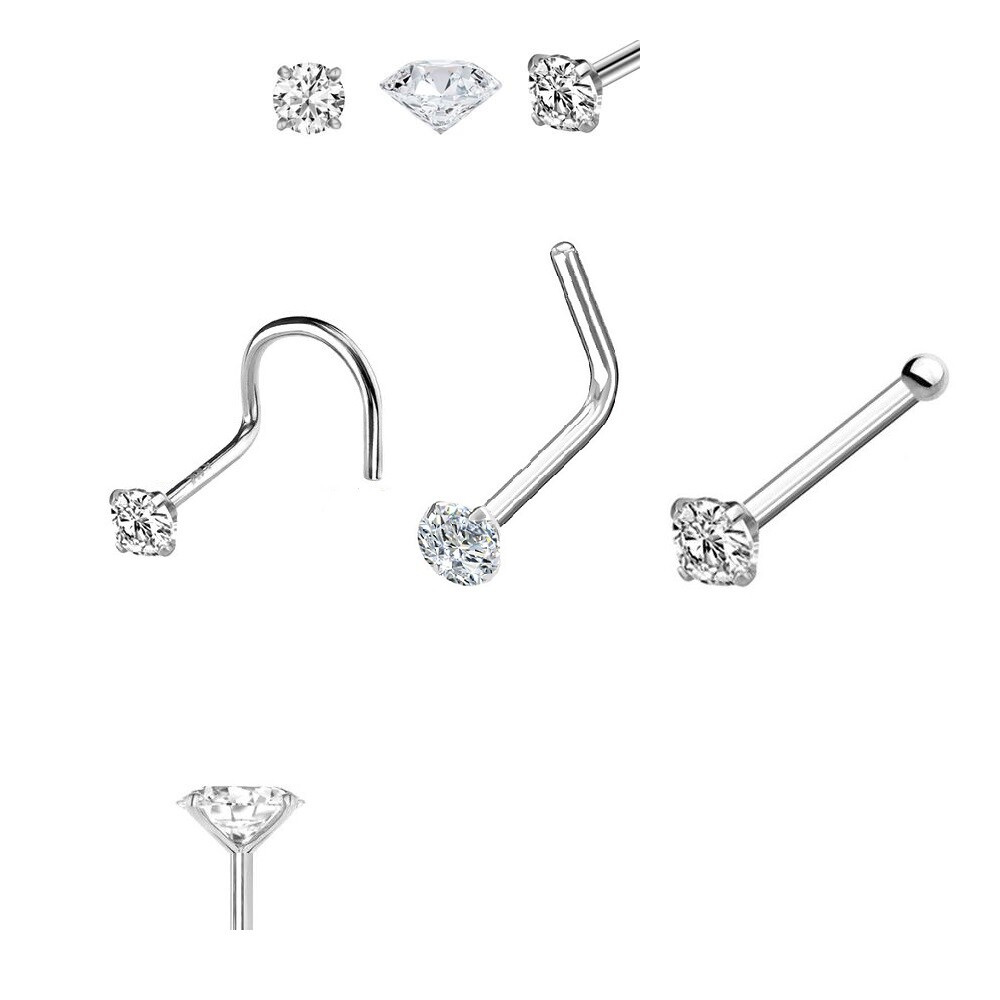 Nose Ring 14kt White Gold 20ga or 18ga Choose L-Shape Nose Bone or Screw