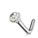 L Bend Nose Screw with Prong Set Gem Made of Solid Titanium  DESCRIPTION L Bend Nose Screw with Prong Set CZ Internally Threaded Measures: 20GA (0.8mm) or 18GA (1mm), 2mm or 3mm...