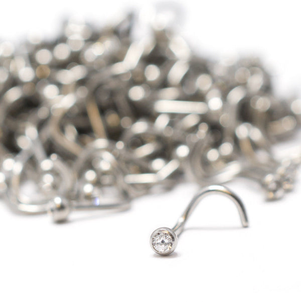12 PC. 316L surgical steel nose screw with a clear cubic zirconia jewel.