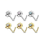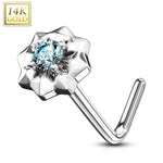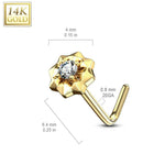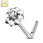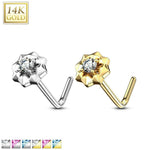 Nose Ring L-Bend with Prong Set CZ Center Starburst 14Kt Solid Gold 20g- Sold Each