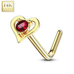 14Kt. Gold L Bend Nose Ring with Prong Set Round CZ Center Hollow Heart