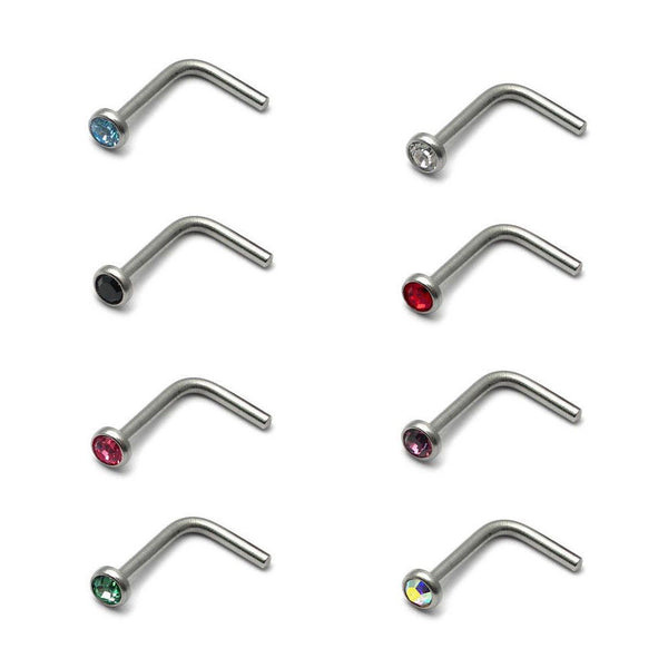 Lot of 8 Nose ring L shape steel with jewel 18G variety of colors NO DUPLICATE.