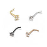 This Beautiful L Shape Nose Rings Comes In 4 Differant Colors and 4 Prong Set Square CZ Gems.