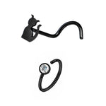 Pack of 2 Anodized Nose Rings- Cat Design Nose Screw & Anodized Nose Hoop with CZ 20ga Surgical Steel