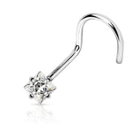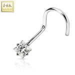 Nose Screw Ring 14kt Solid White Gold with Prong Set CZ Centered Square 20 Gauge