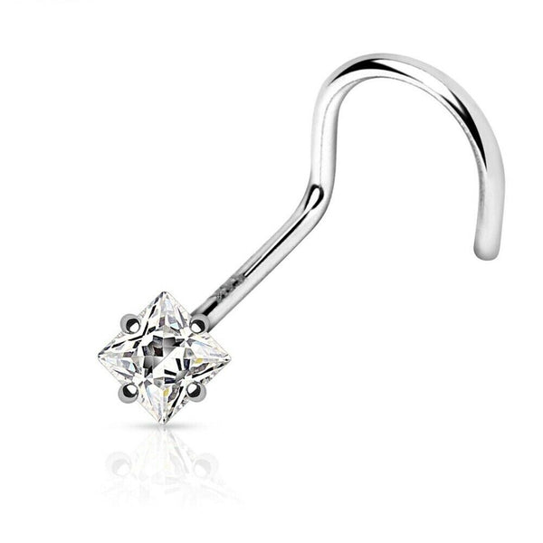 Nose Screw Ring 14kt Solid White Gold with Prong Set CZ Centered Square 20 Gauge Description Measures: 20GA (0.8mm), 1/4" (6mm) length, square jewel is 2.5 mm Cute and Stylish...