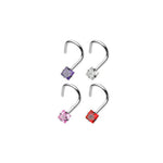 Nose Screw with 3mm Prong Set Square Gem 20g
