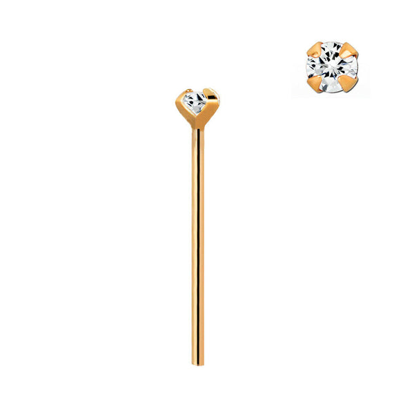 Nose stud Ring 14 karat rose gold self bending 22g with an 1.5mm prong setting round genuine diamond