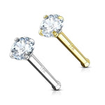 Nose Stud Ring 14 Karat Solid Gold Prong Set 1.8mm CZ 20g