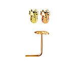 Nose studs L shaped Sterling Silver gold and rose gold plating and a pineapple design 22 gauge